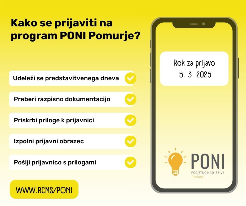 Odprt je razpis za 4. skupino PONI Pomurje